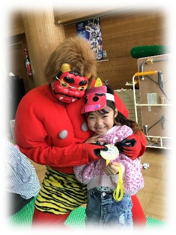 鬼さんと握手をして仲良しになったよ♪鬼さんの大きな手は、とっても温かかったね。