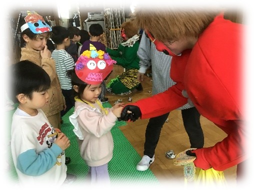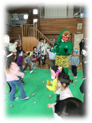 こども園さかえにも、鬼がやってきました!子どもたちは、「いつくるの?」「どこからくるの?」とドキドキです…