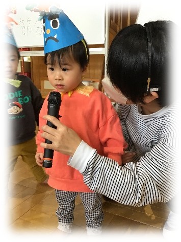 豆まき会では、最初に自分のやっつけたい鬼を発表しました♪